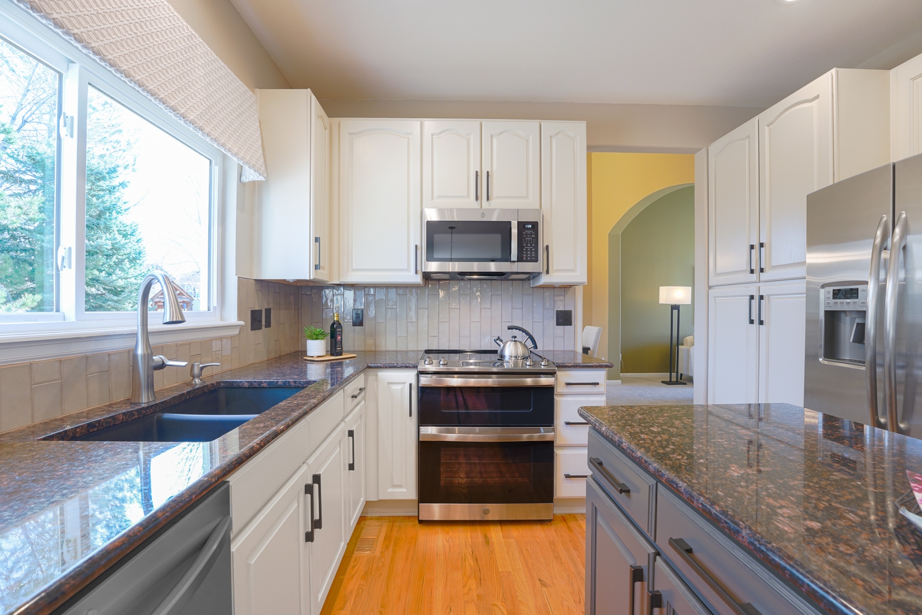This impeccably updated and meticulously maintained 4-bedrooms up, 4-bath Chablis model is conveniently located in the heart of Rock Creek, steps away from Community Park, Circle Park, and an easy walk to Superior Elementary. The stunning primary suite includes vaulted ceilings, a generous walk-in closet, and a spa-inspired bath featuring both a freestanding soaking tub and custom-tiled shower with dual showerheads. The main level is designed for both refined entertaining and everyday comfort, featuring a beautifully updated kitchen with granite countertops and a sleek contemporary backsplash, an inviting eat-in dining area, a spacious private office or main floor bedroom, a rare 3/4 bath, and formal living and dining rooms. Refinished hardwood floors, new carpet, new exterior paint and windows, and fresh designer interior paint enhance the home’s sophisticated appeal. The lower level provides a versatile retreat with cove ceilings, ambient accent lighting, and an additional 3/4 bath-ideal for a media lounge, fitness studio, or guest suite. The backyard features a flagstone patio with overhead string lighting, perfect for entertaining. Newer HVAC, water heater, and whole house fan. Ideally surrounded by Rock Creek’s 30 miles of interconnected trails, pools, parks, and 570 acres of preserved open space.
